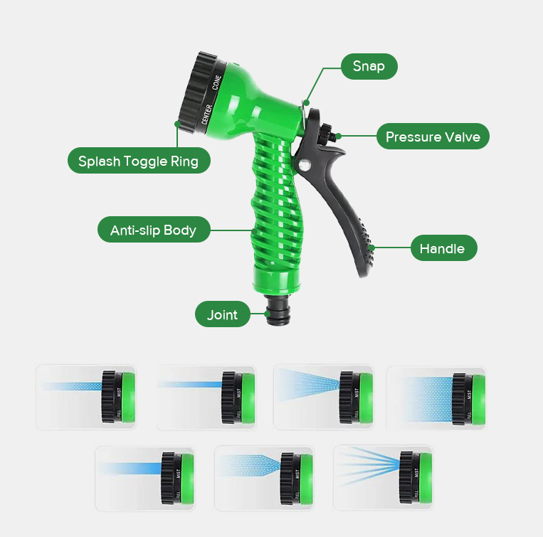 Made of the best quality Latex or TPE hose & strong polyester fabric. It can be used easily for watering & car washing, and it is perfect for DIY home centers and online retailers.